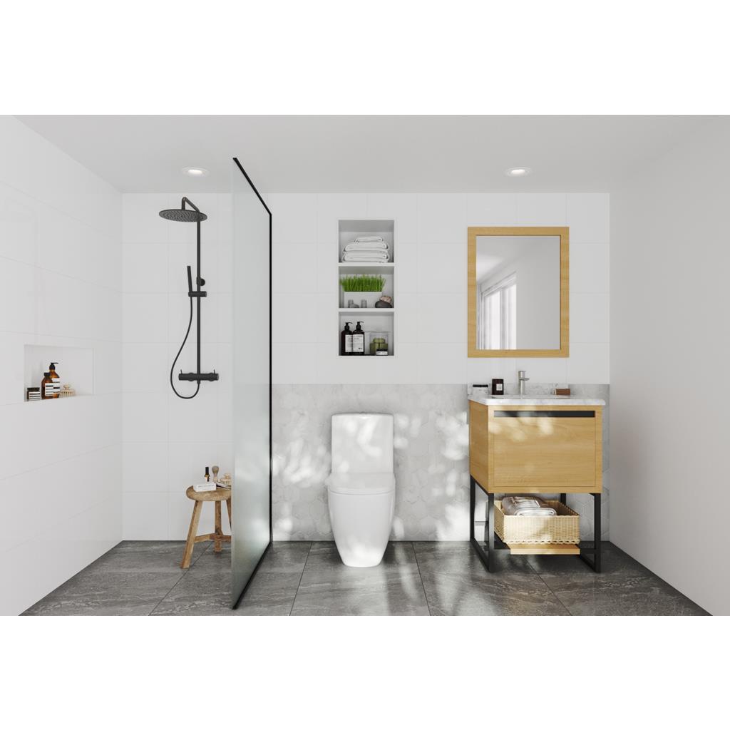 Elevate your space with the Alto Collection! This vanity will bring the New York penthouse vibe to your house. With its straight, simplistic lines and open bottom concept, the Alto collection offers elegance with a modernistic approach. The open bottom shelf can be removed so the vanity can be both wall mounted or freestanding to fit any bathroom design. The matte black, powder coated steel legs and black paint above the drawer offers contrast and chic style. Additionally, the handleless drawer design is embedded within an inner beveled frame. All this is accompanied with soft closing rails, dovetail construction drawers, and solid oak wood frame. Make the Alto collection the statement piece in your bathroom!