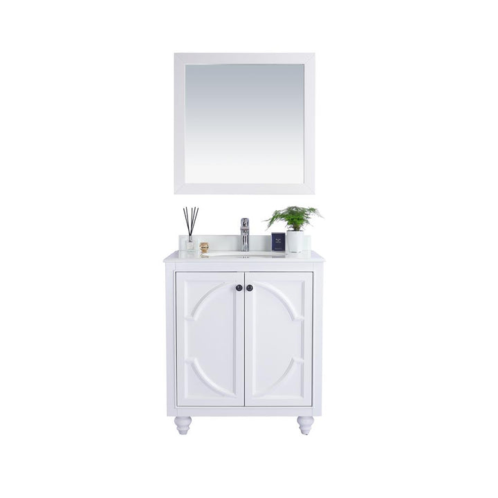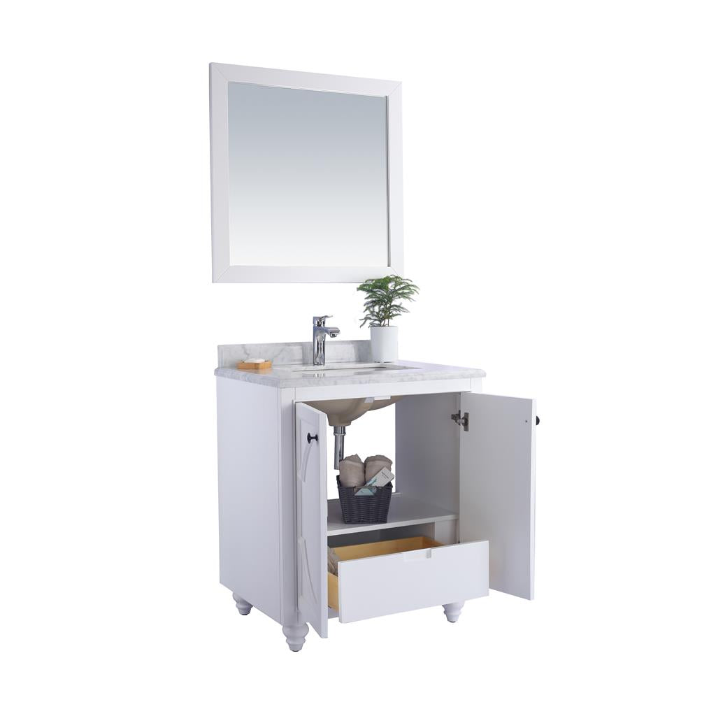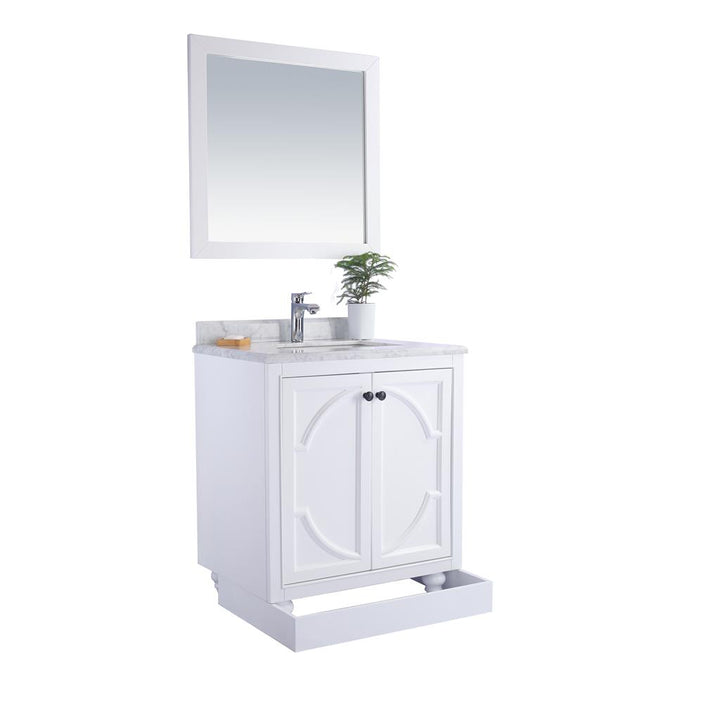 The Odyssey collection is a “work of art" fashioned into a vanity of worth, function, and style. From the top of the countertop, finished so eloquently by the double Ogee edge, to the grain within the finish, lavishly covering the cabinet in 2 colors: Classic White or Maple Grey. The brilliance of the well-thought out concept continues with open shelves and top drawer (on the 36" or larger models). This vanity also comes with an optional Toe-Kick assembly to cover the freestanding legs for a “built-in" approach. Available in single sink options in 24", 30", 36", 48", and double sink option in 60".