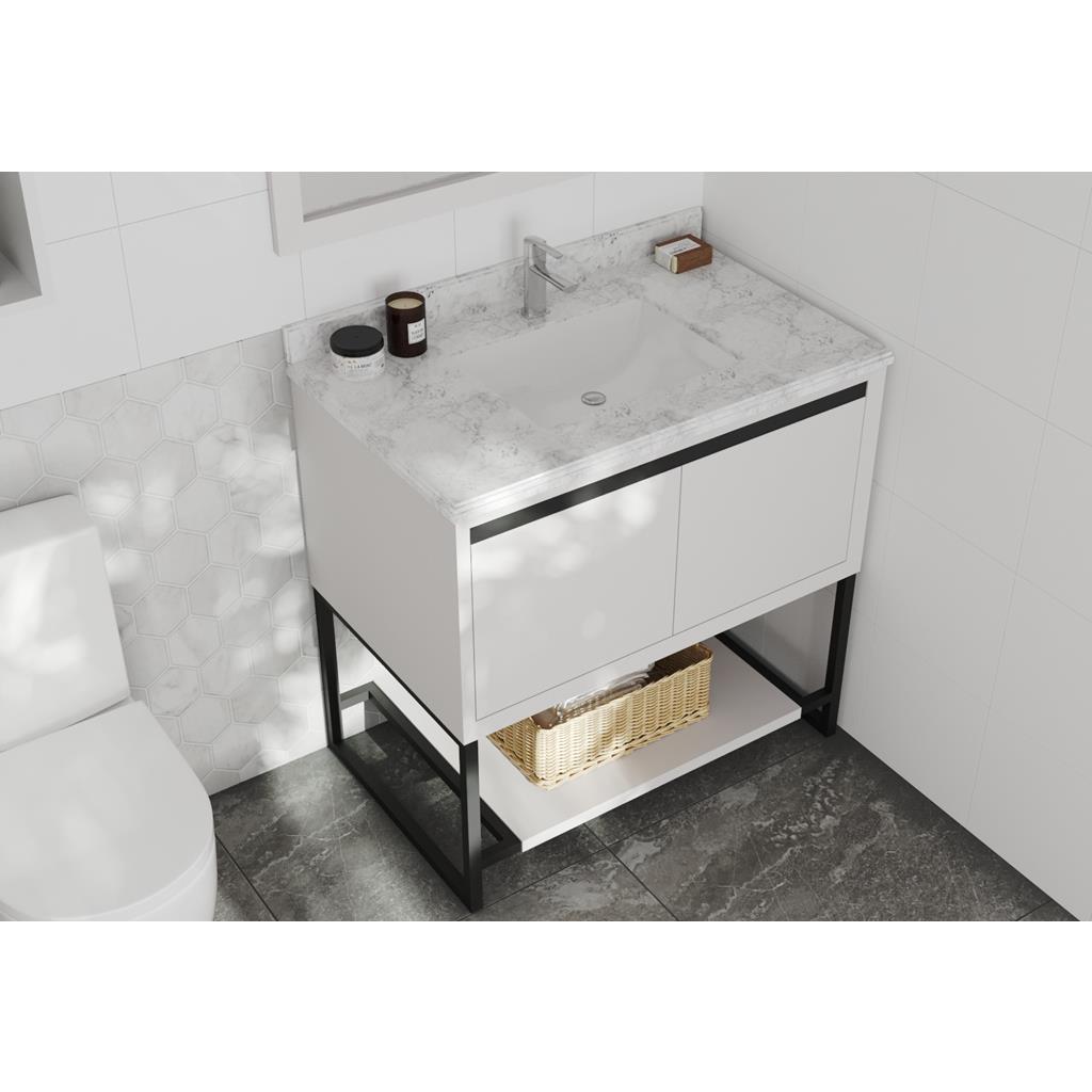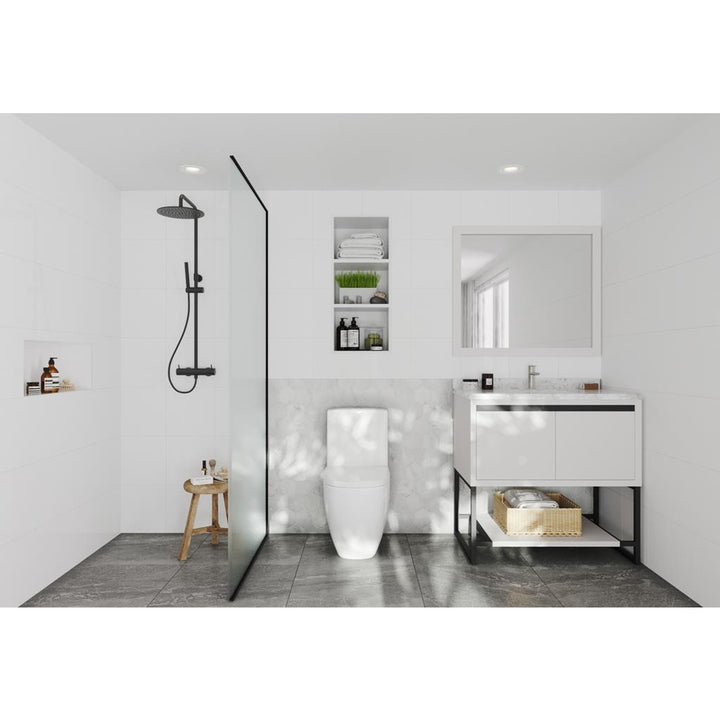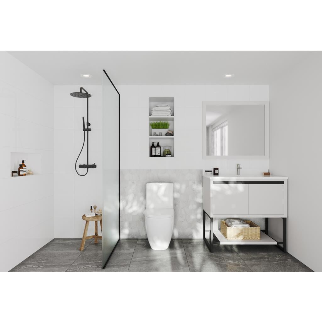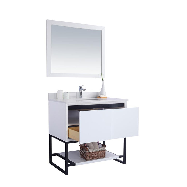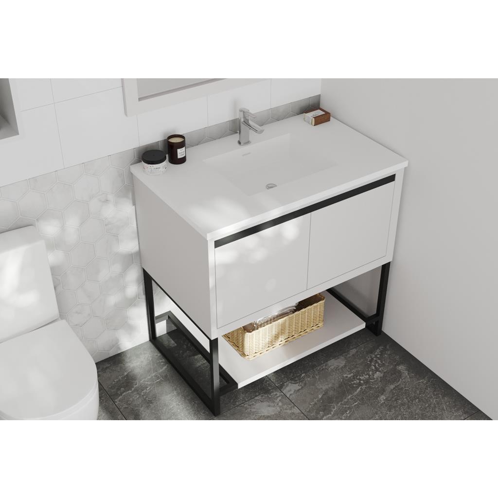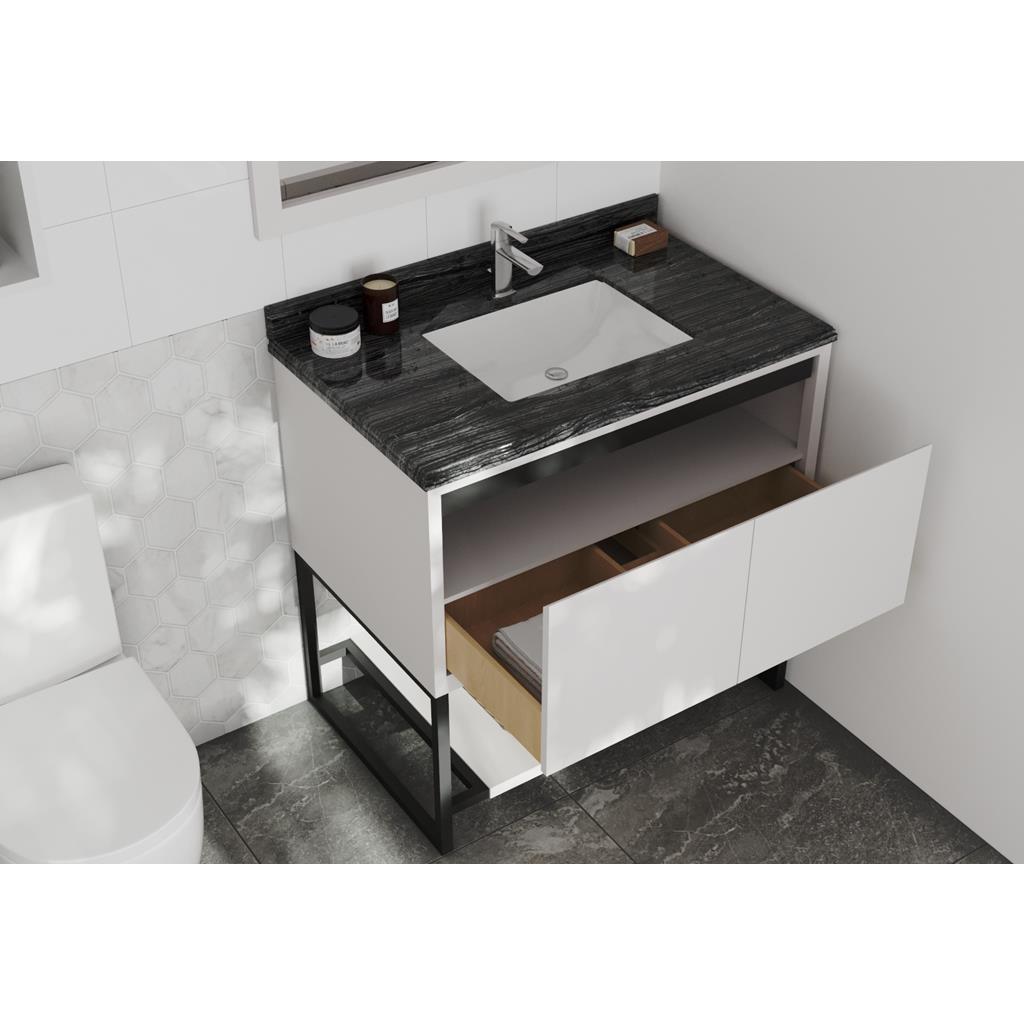 Elevate your space with the Alto Collection! This vanity will bring the New York penthouse vibe to your house. With its straight, simplistic lines and open bottom concept, the Alto collection offers elegance with a modernistic approach. The open bottom shelf can be removed so the vanity can be both wall mounted or freestanding to fit any bathroom design. The matte black, powder coated steel legs and black paint above the drawer offers contrast and chic style. Additionally, the handleless drawer design is embedded within an inner beveled frame. All this is accompanied with soft closing rails, dovetail construction drawers, and solid oak wood frame. Make the Alto collection the statement piece in your bathroom!