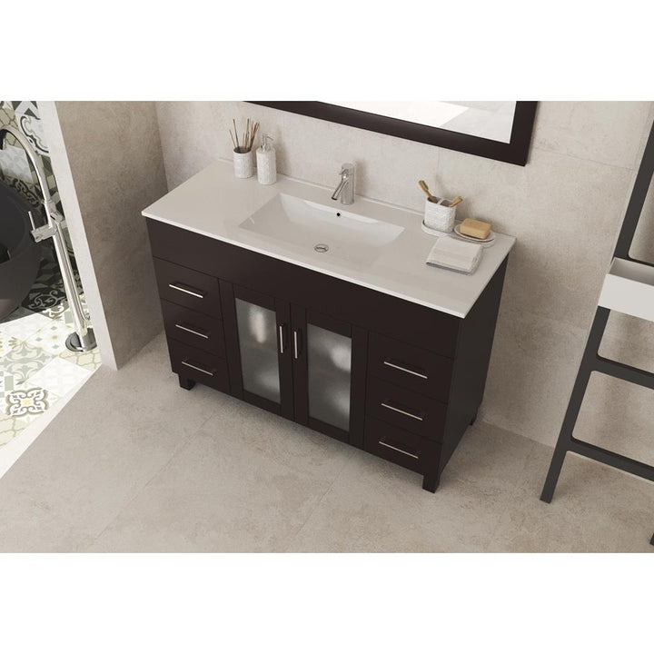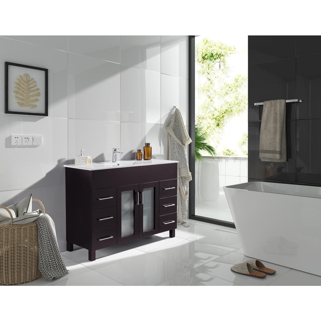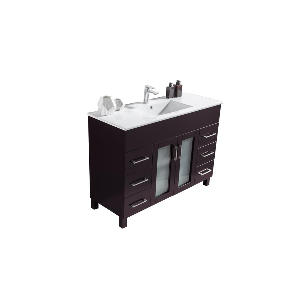 The Nova Collection offers a modern yet contemporary design without sacrificing functionality. This elegant collection offers 2 doors and many full extension drawers with soft closing hinges and rails, so you’ll never hear the door slam. The sleek ceramic basin has a modern rectangular seamless sink with an overflow. This stylish vanity has immaculate finish options including: White, Grey, Espresso, and Brown.