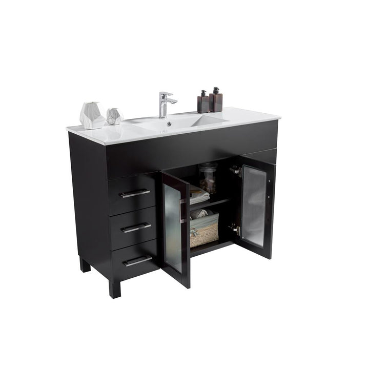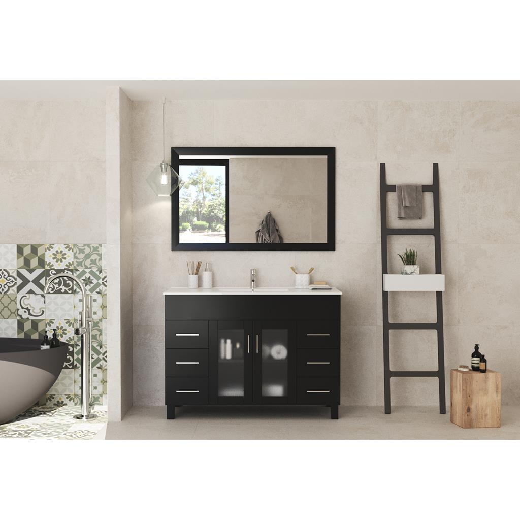 The Nova Collection offers a modern yet contemporary design without sacrificing functionality. This elegant collection offers 2 doors and many full extension drawers with soft closing hinges and rails, so you’ll never hear the door slam. The sleek ceramic basin has a modern rectangular seamless sink with an overflow. This stylish vanity has immaculate finish options including: White, Grey, Espresso, and Brown.