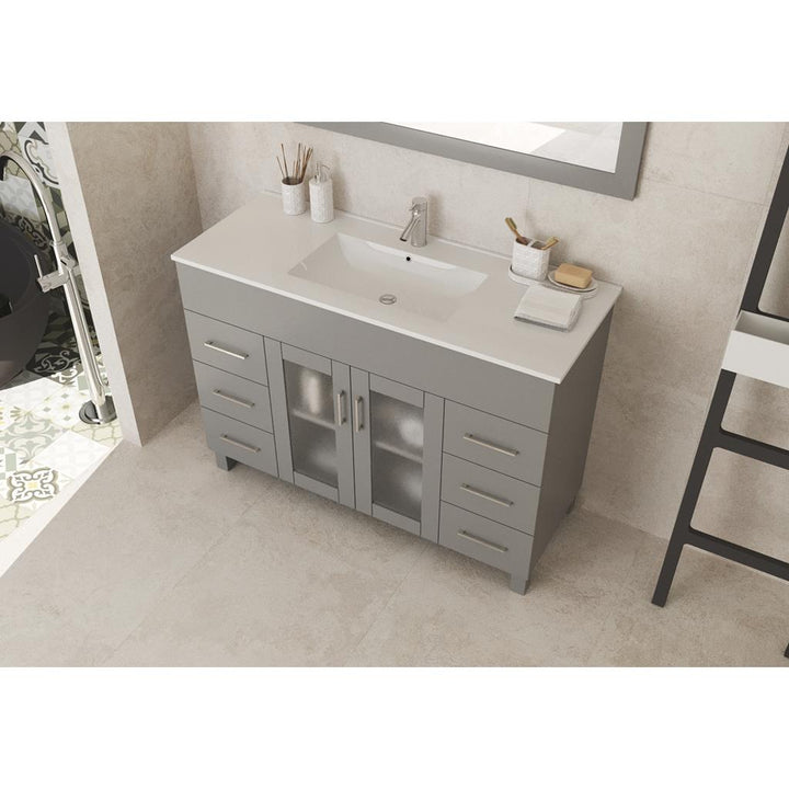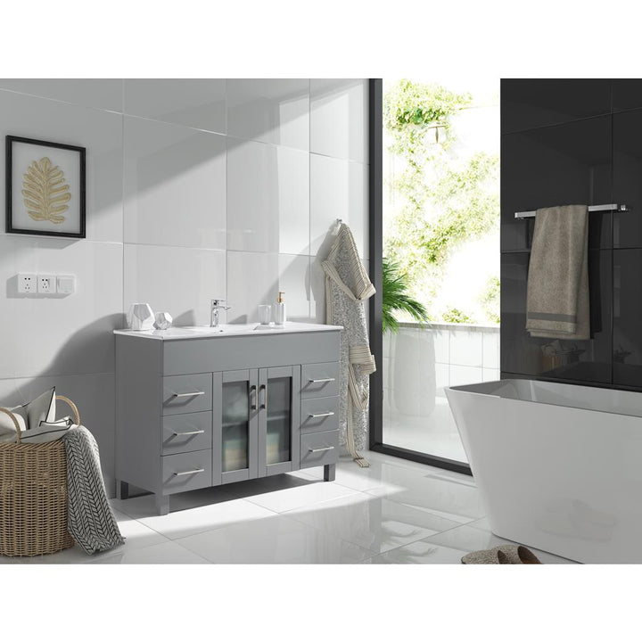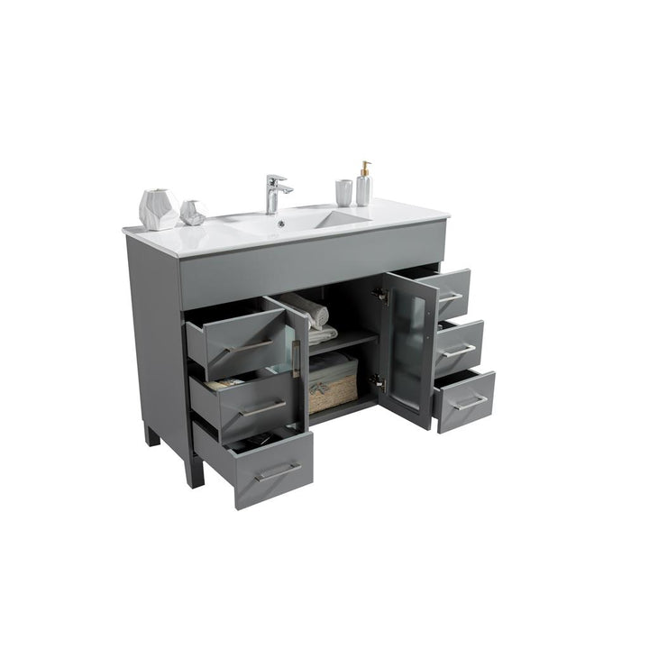The Nova Collection offers a modern yet contemporary design without sacrificing functionality. This elegant collection offers 2 doors and many full extension drawers with soft closing hinges and rails, so you’ll never hear the door slam. The sleek ceramic basin has a modern rectangular seamless sink with an overflow. This stylish vanity has immaculate finish options including: White, Grey, Espresso, and Brown.