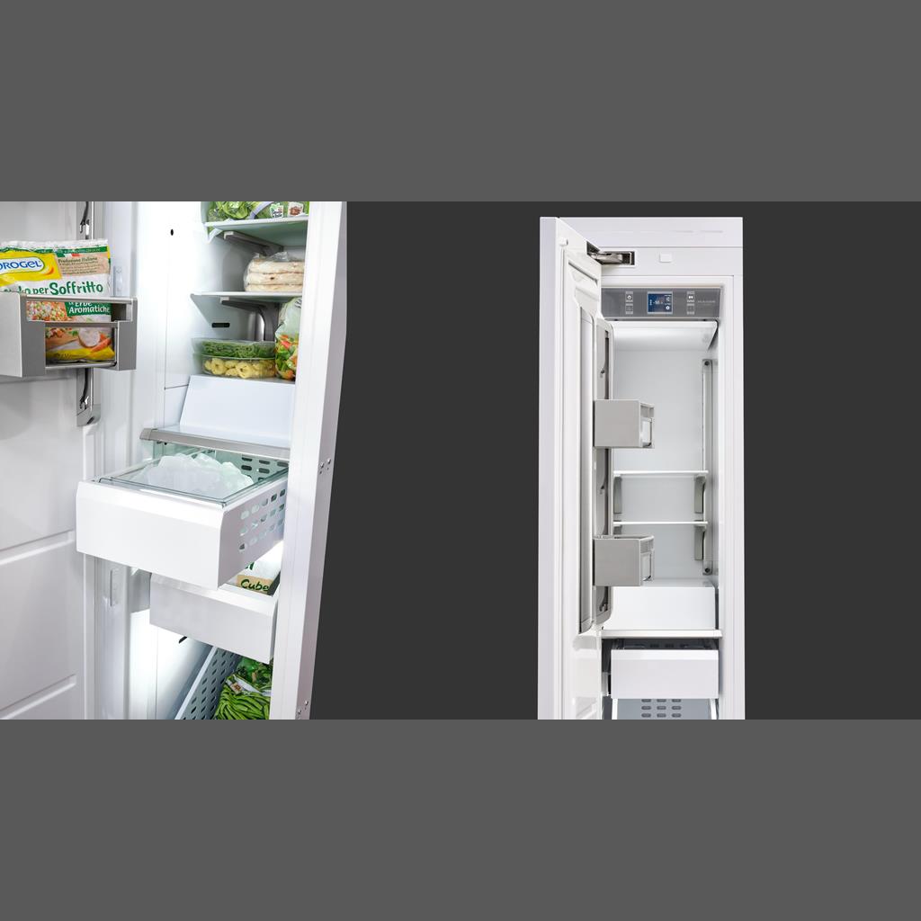 Our overlay column freezers are both powerful, elegant and provide commercial-grade performance. Custom panels can be installed to provide a completely integrated look with adjacent cabinets and feature a brilliant white aluminum interior with metal bins on full extension stainless glides. All units feature an accessory ice maker, with food preservation being the priority. Combining elegant design and commercial quality, ensures optimal food preservation performance. A dedicated compressor and evaporator provide consistent and precise temperatures throughout.