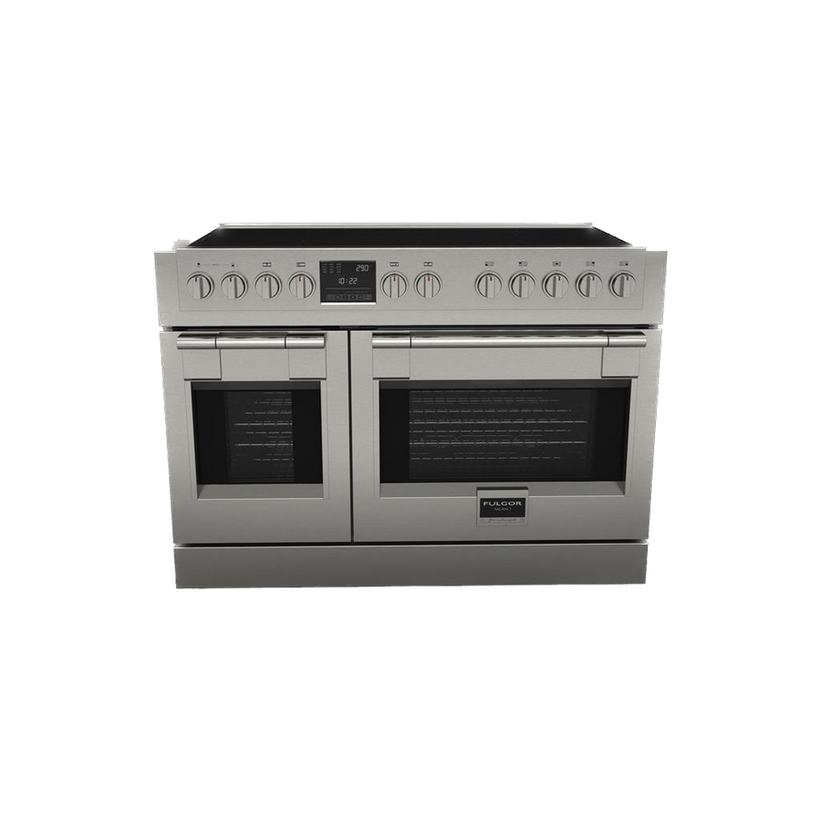 This elegantly designed 48” induction range has a cooking surface that features 7 powerful premium European inductors under a continuous piece of ceramic glass. It includes a dedicated bridge element, which allows one to combine both induction zones into one large zone for use with specialty cookware or an induction-capable griddle. The precise control of the induction is ensured by professional control knobs. Two self-cleaning true convection ovens with intuitive multiple baking and broiling functions and the convenience of telescoping racks encourage you to cook the way you want.
